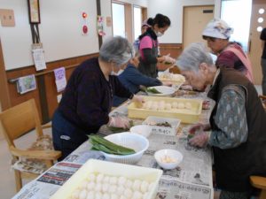 利用者の方は昔を思い出しながら慣れた手つきで作業され、昼食前に300個以上もの数を仕上げることができました。