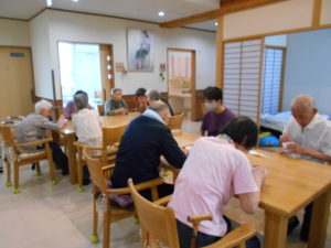 かき氷はそれぞれ好きな味のシロップやジュースをかけて食べました。種類が色々とある中、イチゴ味が大盛況でした。
