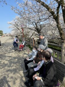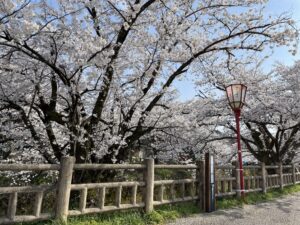 満開の桜並木はとても綺麗で、ベンチに座ってゆっくりと堪能しました。