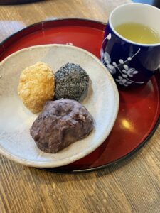 甘く柔らかく仕上がったおはぎと温かいお茶を一緒にいただきました☺
