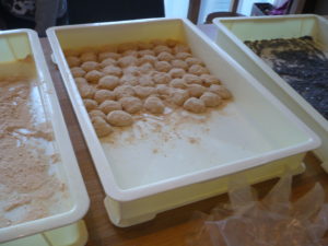 もち米と一緒に里いもを蒸してあります。お餅ののど越しがよくなります。
