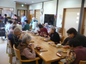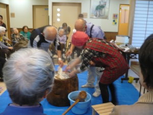 木製の臼と杵での餅つき大会は、利用者の方に懐かしく思っていただけたようで、みなさん昔の思い出やお餅の上手なつき方など、お話されていました。