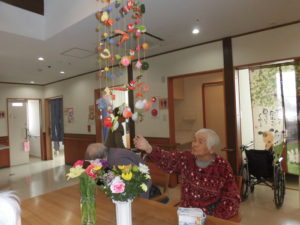 今年のグループホームには職員の手作り「つるし雛」が飾ってありました。